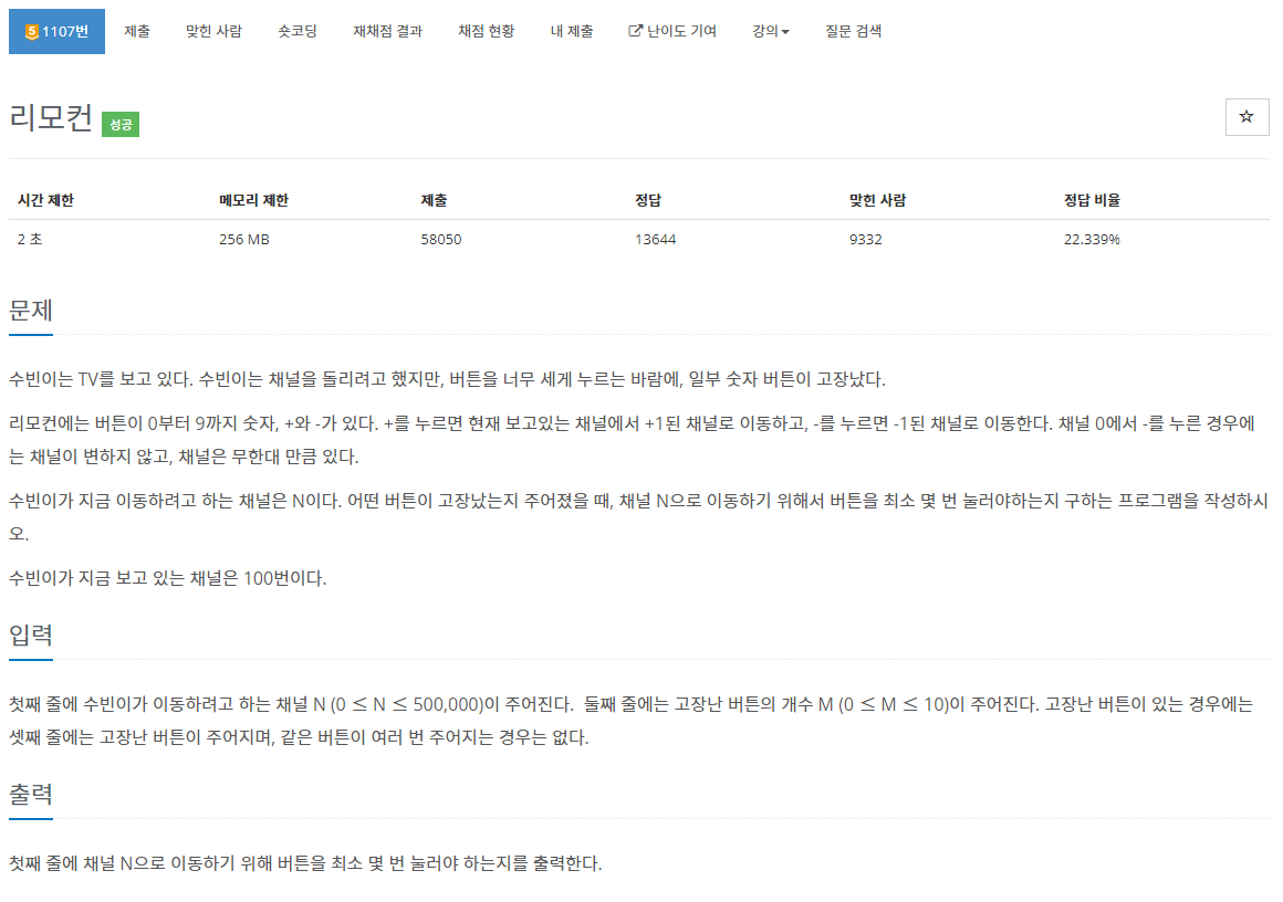 백준 1107 리모컨 / C++ 본문