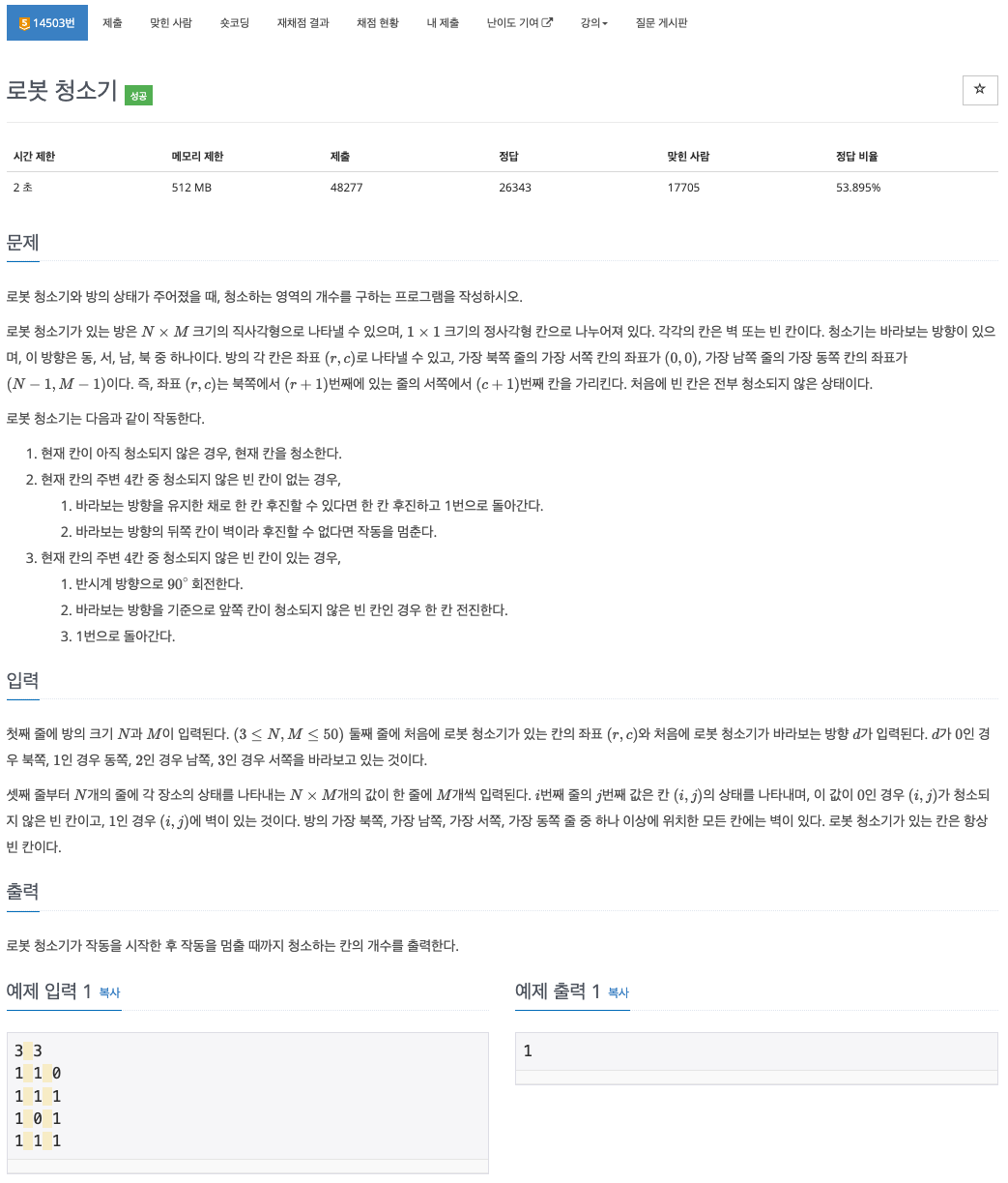 https://www.acmicpc.net/problem/14503