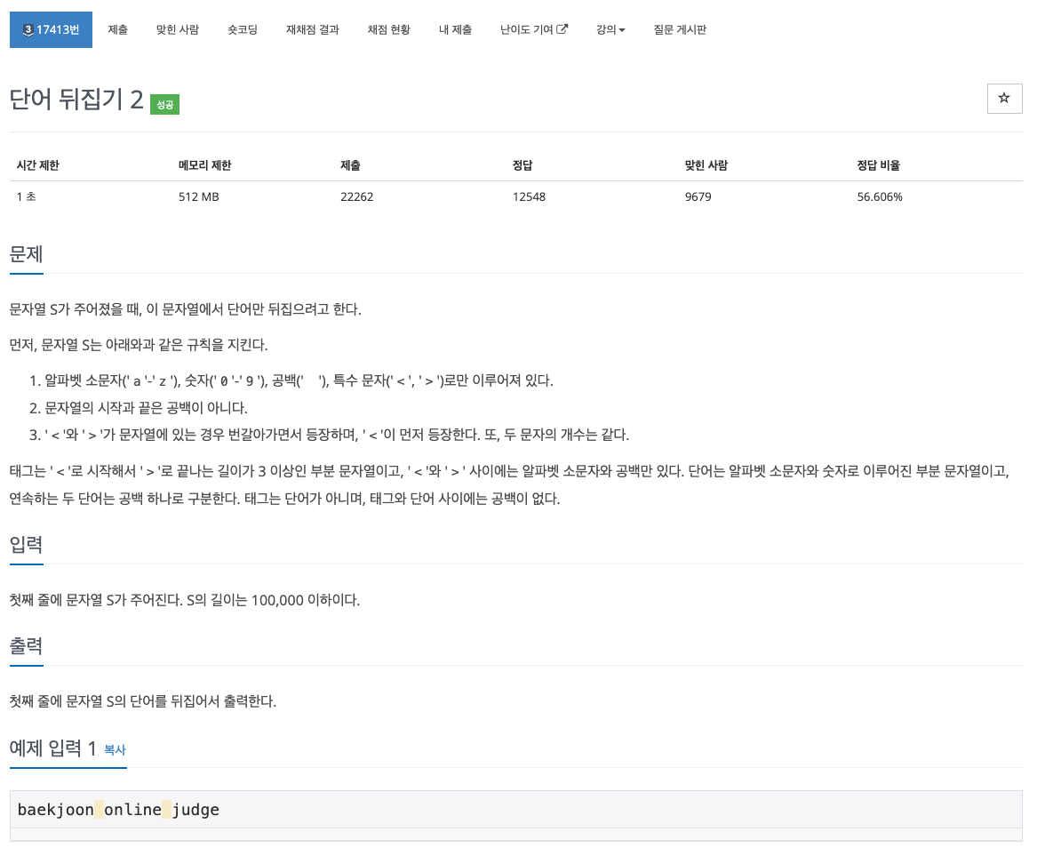17413번: 단어 뒤집기 2