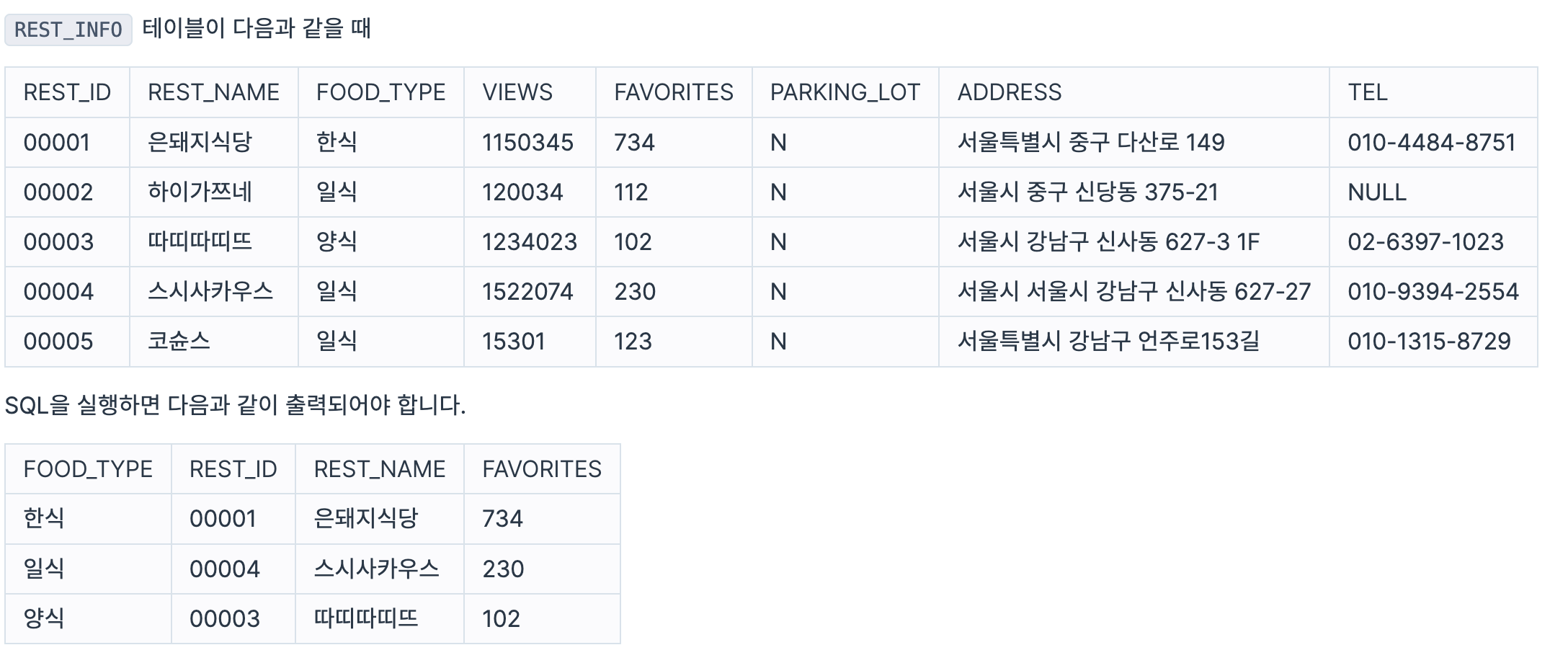 [프로그래머스] 즐겨찾기가 가장 많은 식당 정보 출력하기 (MySQL) 본문