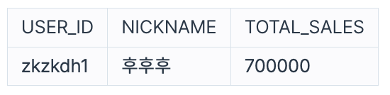 GROUP BY ugb.WRITER_ID HAVING SUM(ugb.PRICE) >=700000
