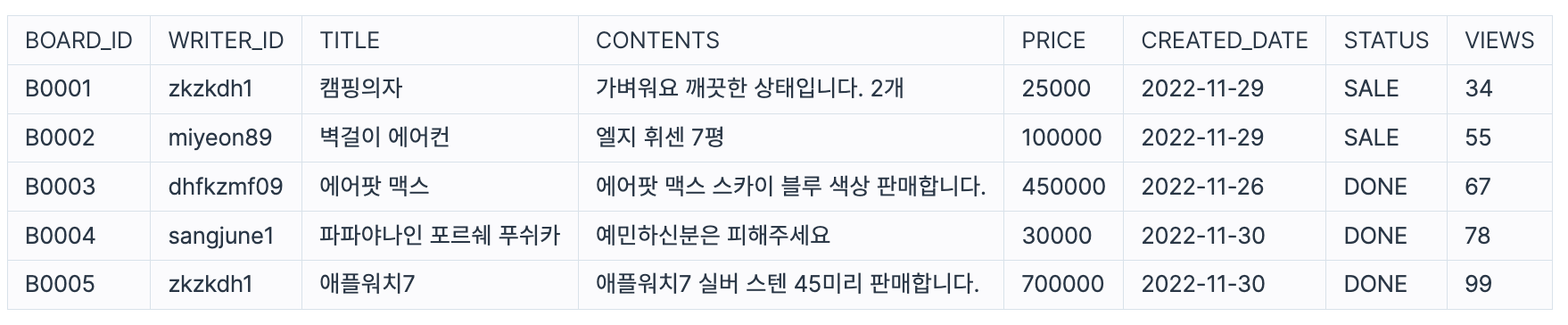 USED_GOODS_BOARD 테이블이 다음과 같고
