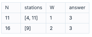 - stations는 오름차순으로 정렬되어 있고, 배열에 담긴 수는 N보다 같거나 작은 자연수입니다.