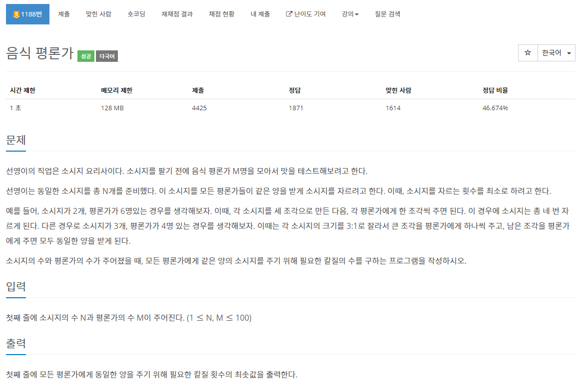 백준 1188 음식 평론가 / C++