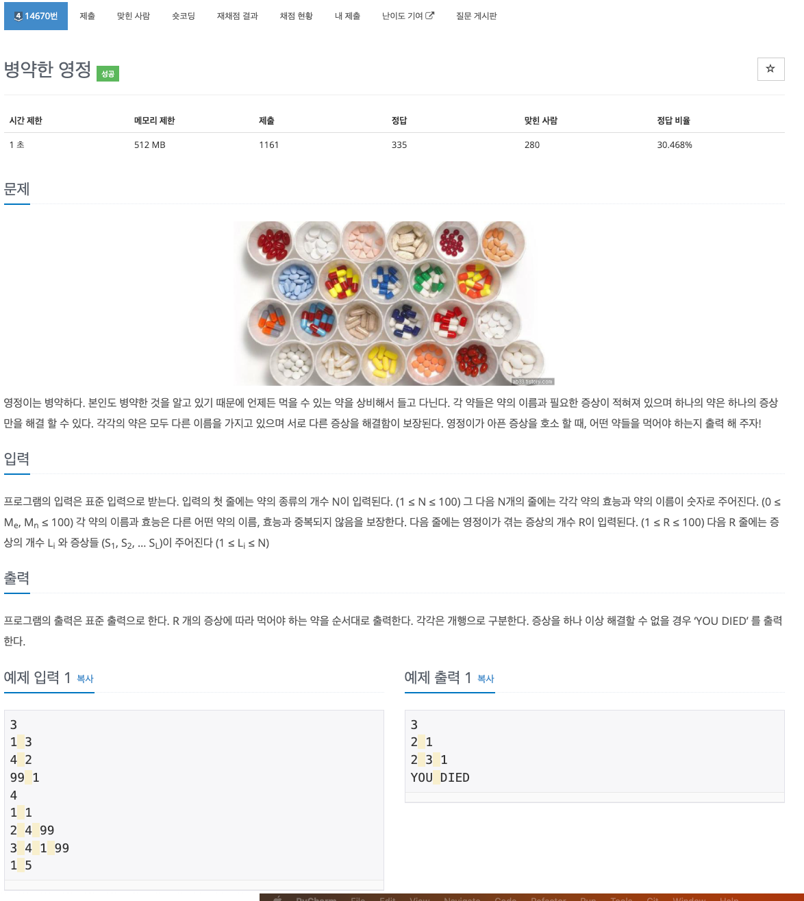백준 14670 병약한 영정 / Python