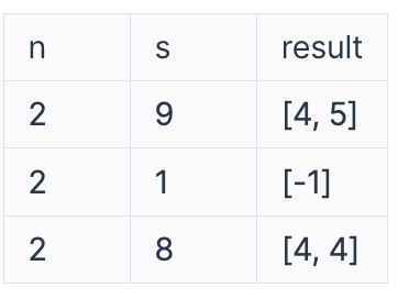 - 만약 최고의 집합이 존재하지 않는 경우에 크기가 1인 1차원 배열(list, vector) 에 -1 을 채워서 return 해주세요.